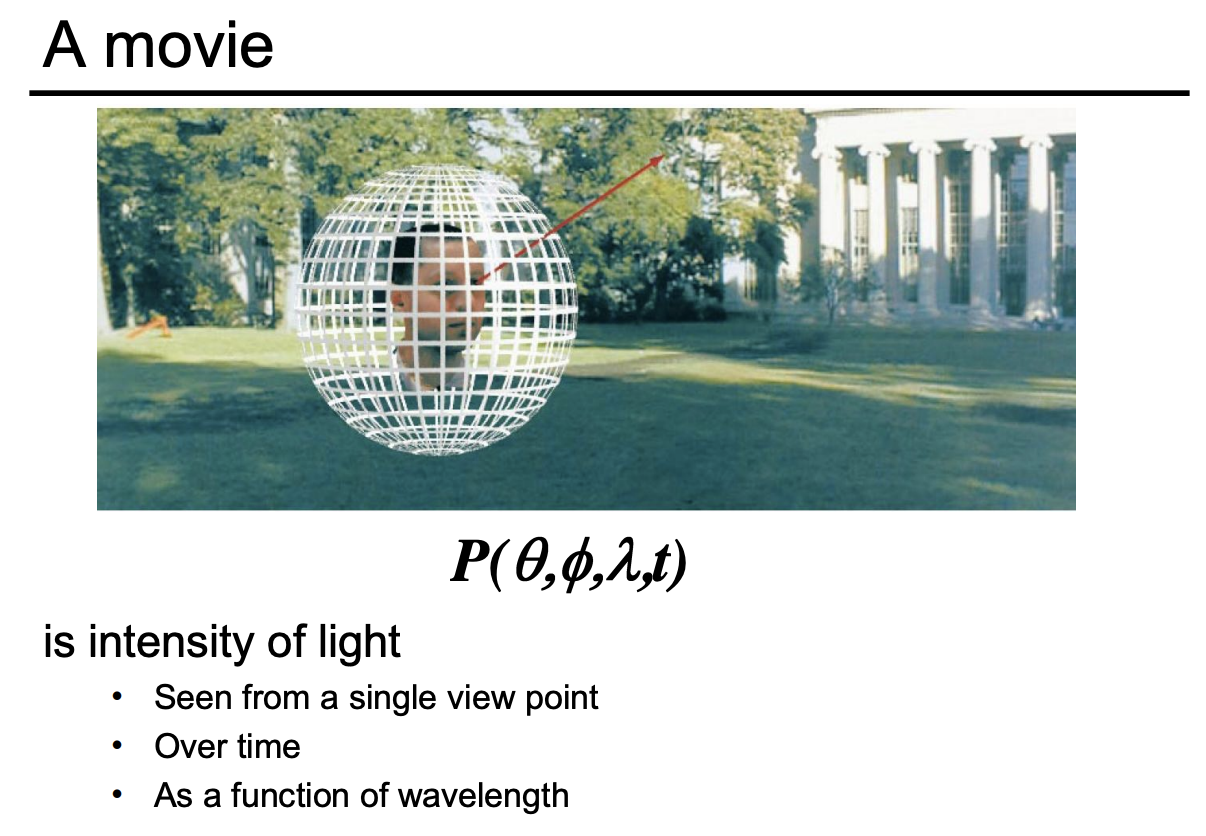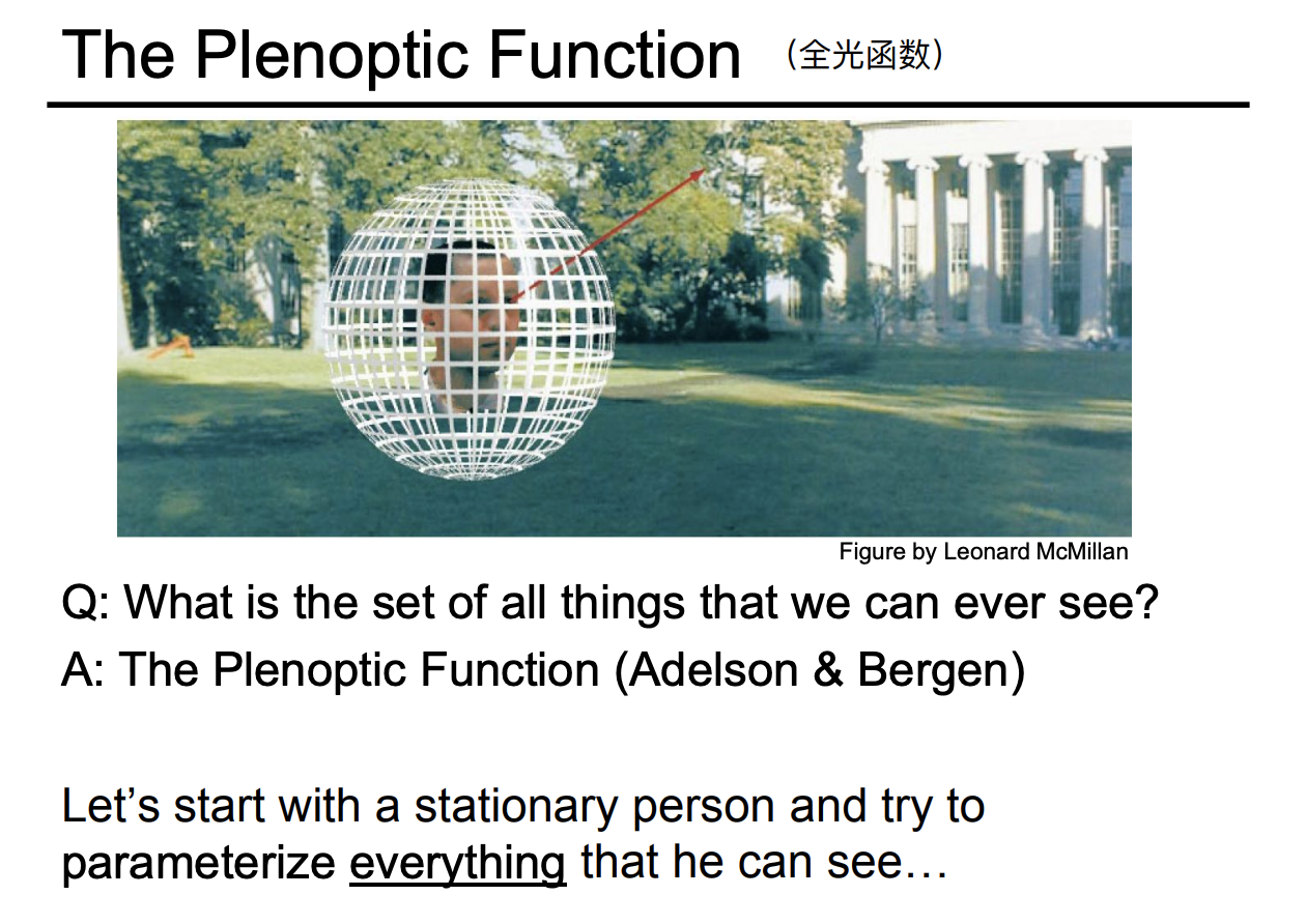最后把函数理解成在任何位置,往任何方向看,在任何时间,看到不同的颜色。这个 7 维的函数就叫做全光函数。