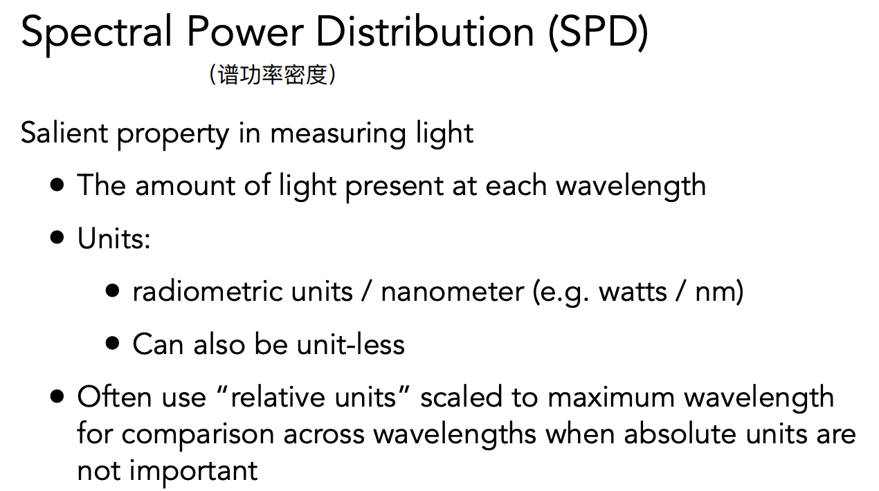 不同颜色的光有不同的波长,图形学关心的通常是可见光的光谱