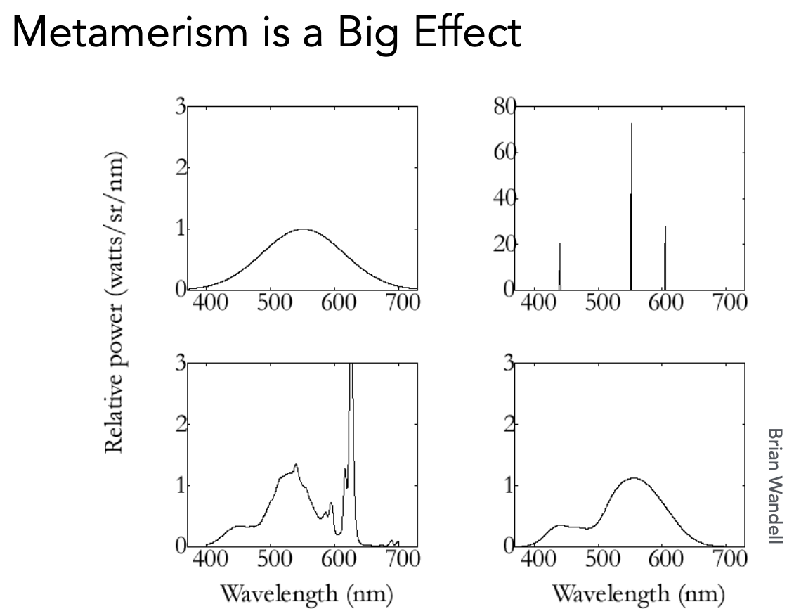 光谱不一样,但是人感知到的颜色一样