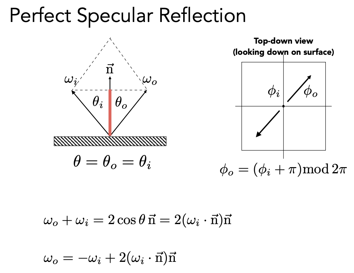 镜面发射也可以写出 BRDF,但是出射方向只集中在镜面反射的方向,因此写出正确的 BRDF 不那么容易。