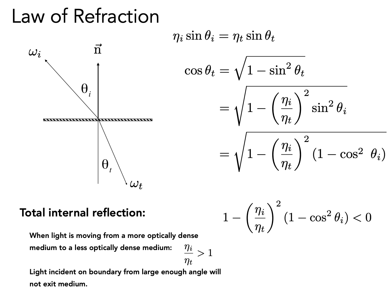 当出射的折射率大于入射的折射率时,可能出现无法折射的现象: