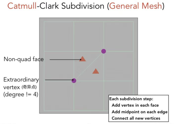 Loop Subdivision 只能处理三角形的情况,Catmull-Clark 可以处理任何面