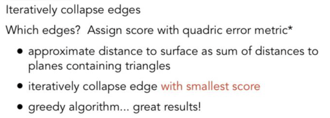 局部取最小,更新受影响的边的二次度量误差,再取最小,再更新…