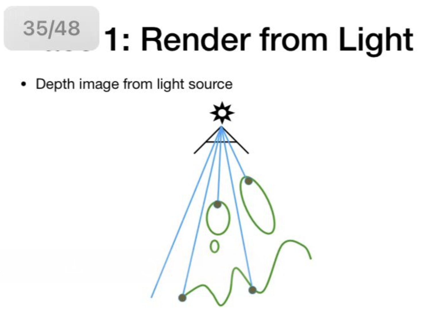 从光源看向物体,生成一幅图,把不同位置看到的点的深度记录下来