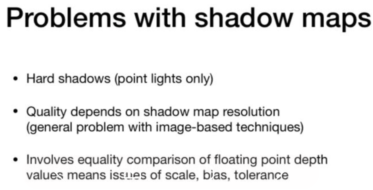 shadowMapping 会有各种问题: 判断深度是否相等,需要判断两个浮点数相等,实际一定会有误差,有精度问题。