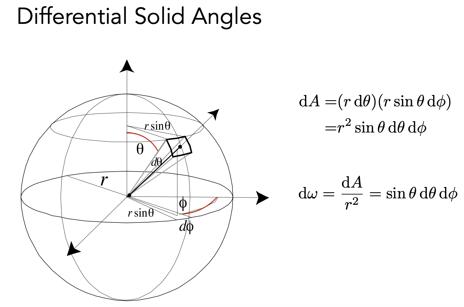 (θ,Φ)不是均匀的划分球体面积,靠近顶(底)部,sinθ 小,微分立体角小,靠近球中间,sinθ 大。