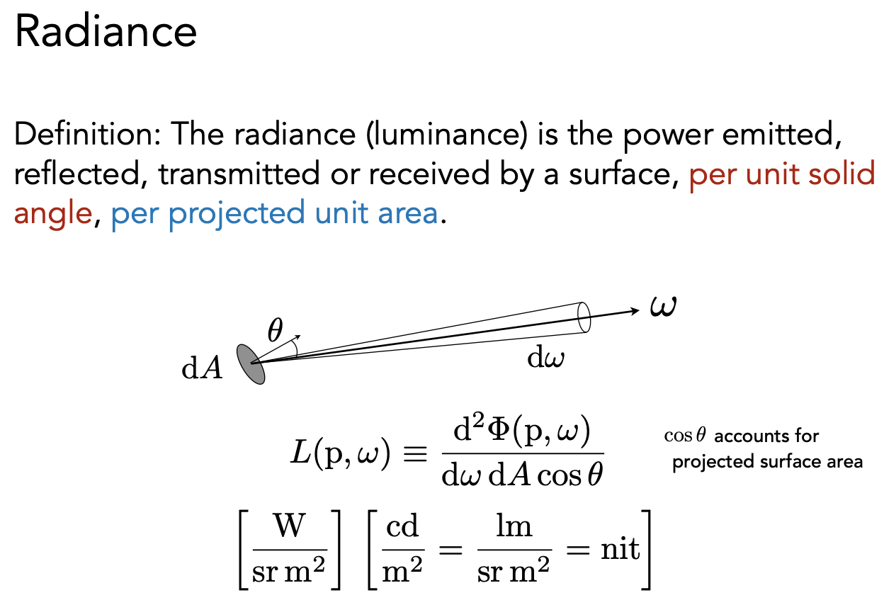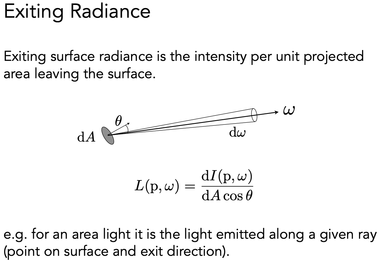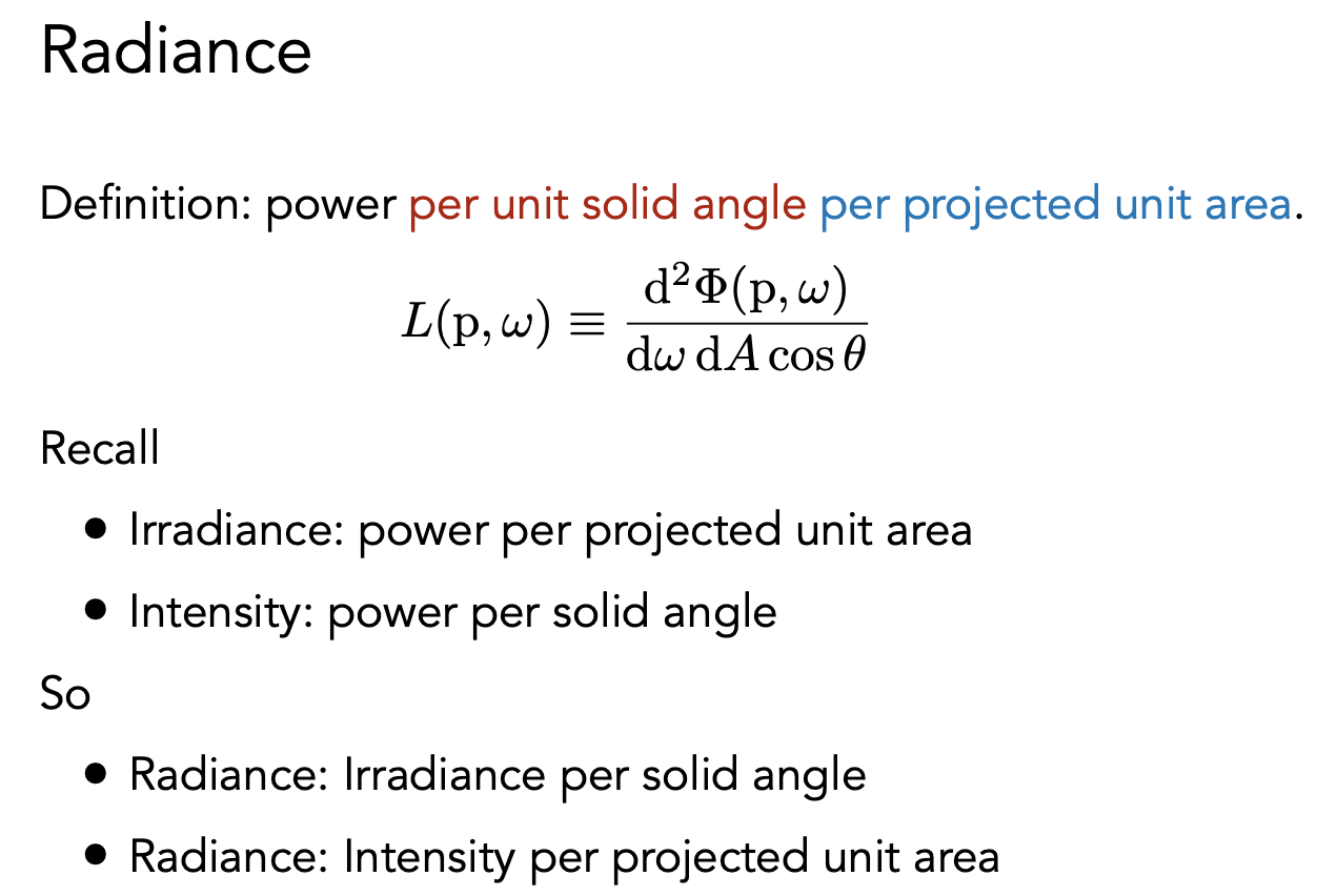 也可以用 intensity 来理解,即一个单位面积上往一个方向辐射出去的能量。