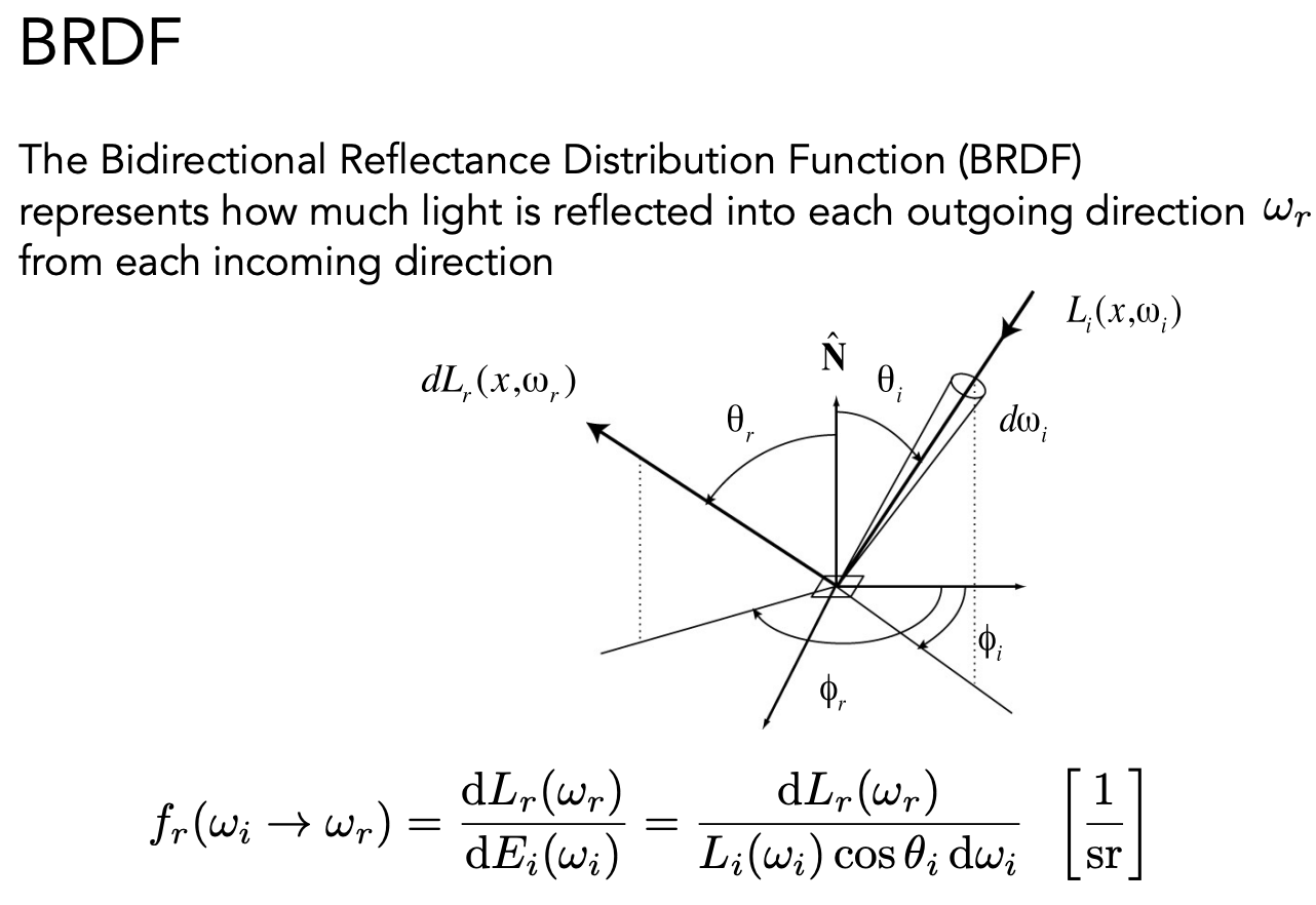 BRDF 定义了光线和物体是怎么作用的,定义了不同的材质