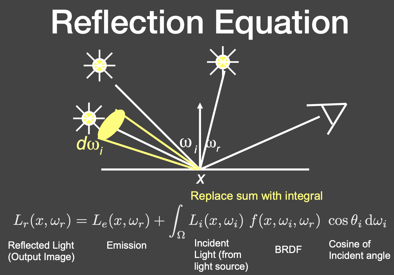 如果是一个面光源,就把面光源上每个点的反射积分: