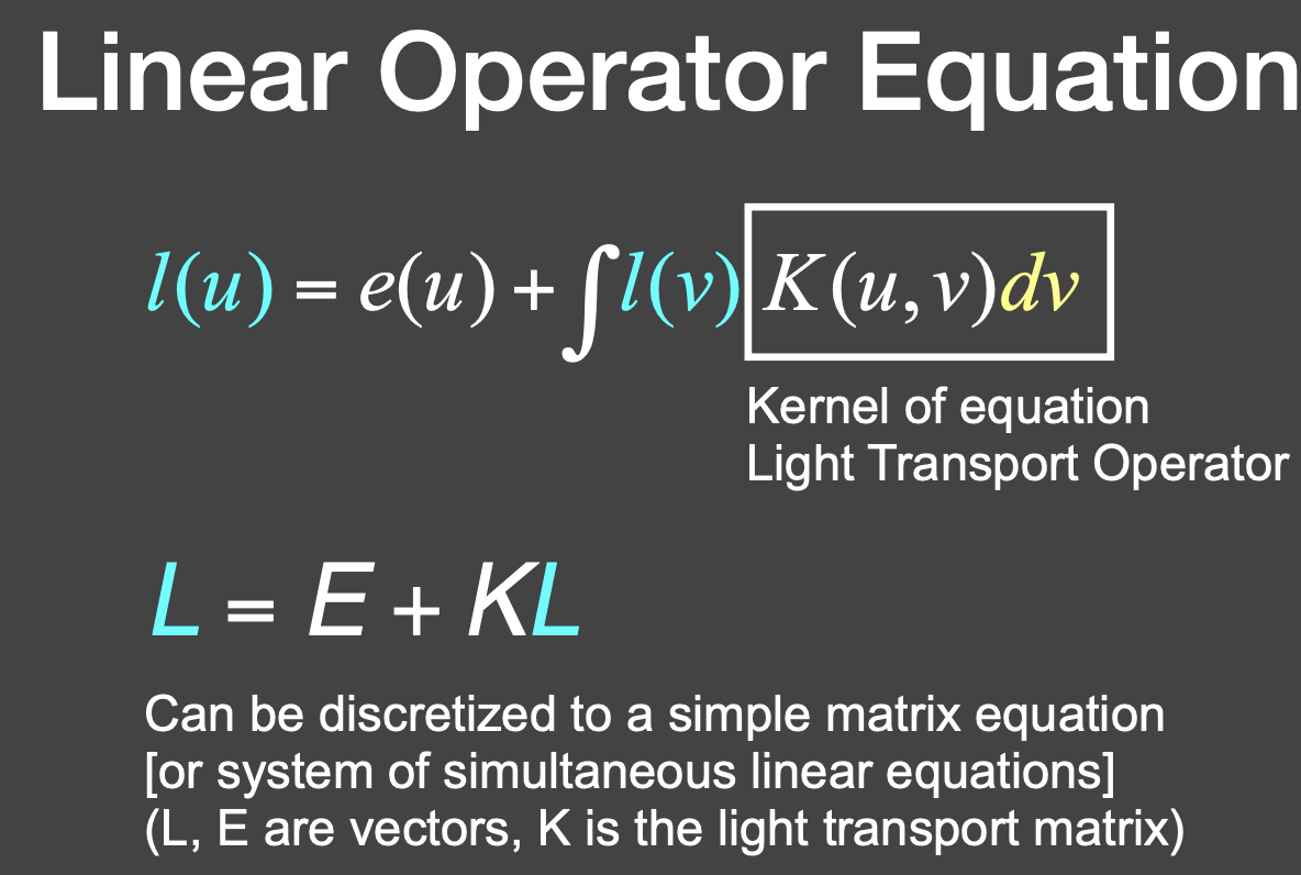 E:光源发出的能量,K:反射操作符,KL:反射的能量