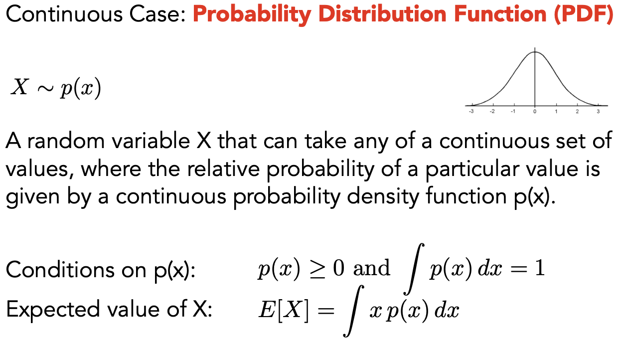 连续情况下描述变量和分布(概率密度函数):