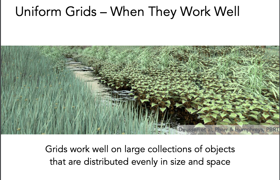 当几何物体在场景中分布比较均匀时,格子加速的效果比较好