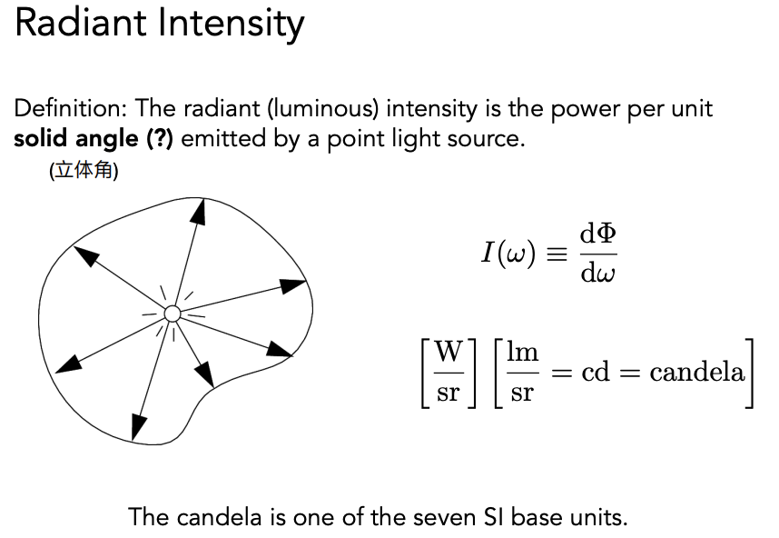 光源辐射的能量:radiant Intensity,定义了方向性和能量相关的概念