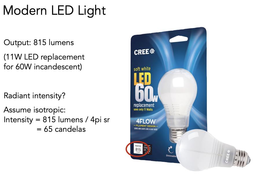小知识:现代 LED 灯上标注的瓦数不是真实的,而是对应于白炽灯的瓦数,LED 实际瓦数更低。