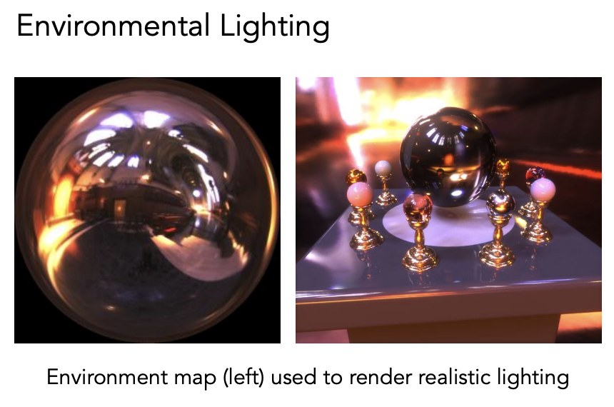 环境光可以记录在球面上,放在不同的方向上记录一个点,再把图展开(就像世界地图)