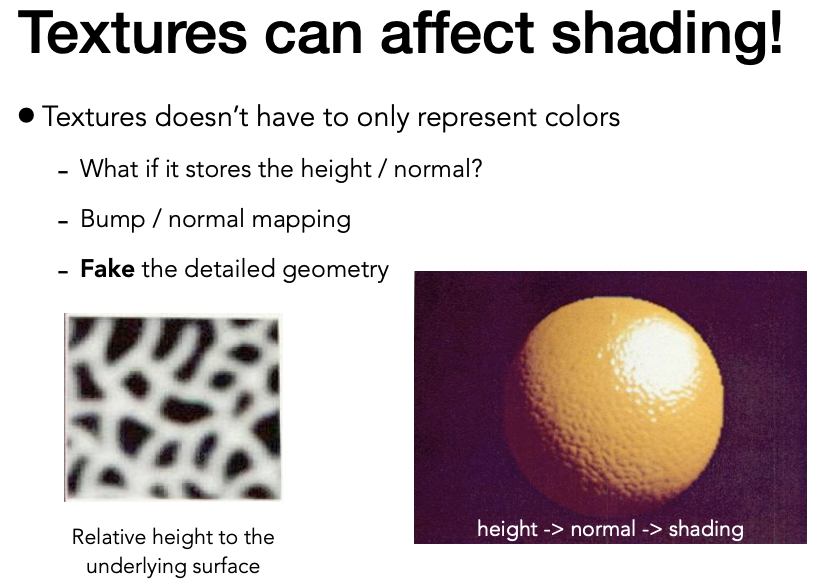 可以在不把几何形体变复杂的情况下,定义任意一个点的相对高度,通过相对高度计算出一个假的法线,产生着色上的明暗对比。