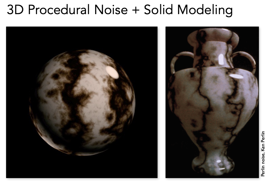 不真正生成纹理图,定义一个三维噪声函数,计算空间中每一个点计算出噪声的值,再通过一些计算得到纹理。