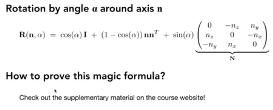 其中 n 是任意旋转轴(可以不经过原点),α 是旋转角