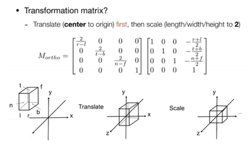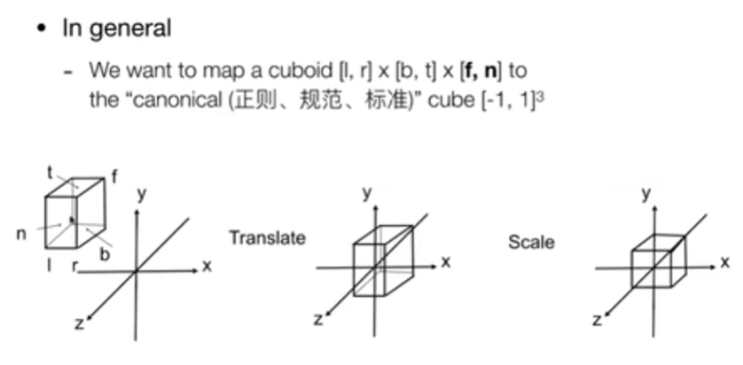 定义一个立方体,映射到一个正则(规范、标准)立方体上。先做平移,再做缩放。